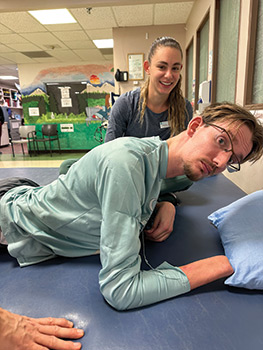A successful physio session sitting up in the prone position.
